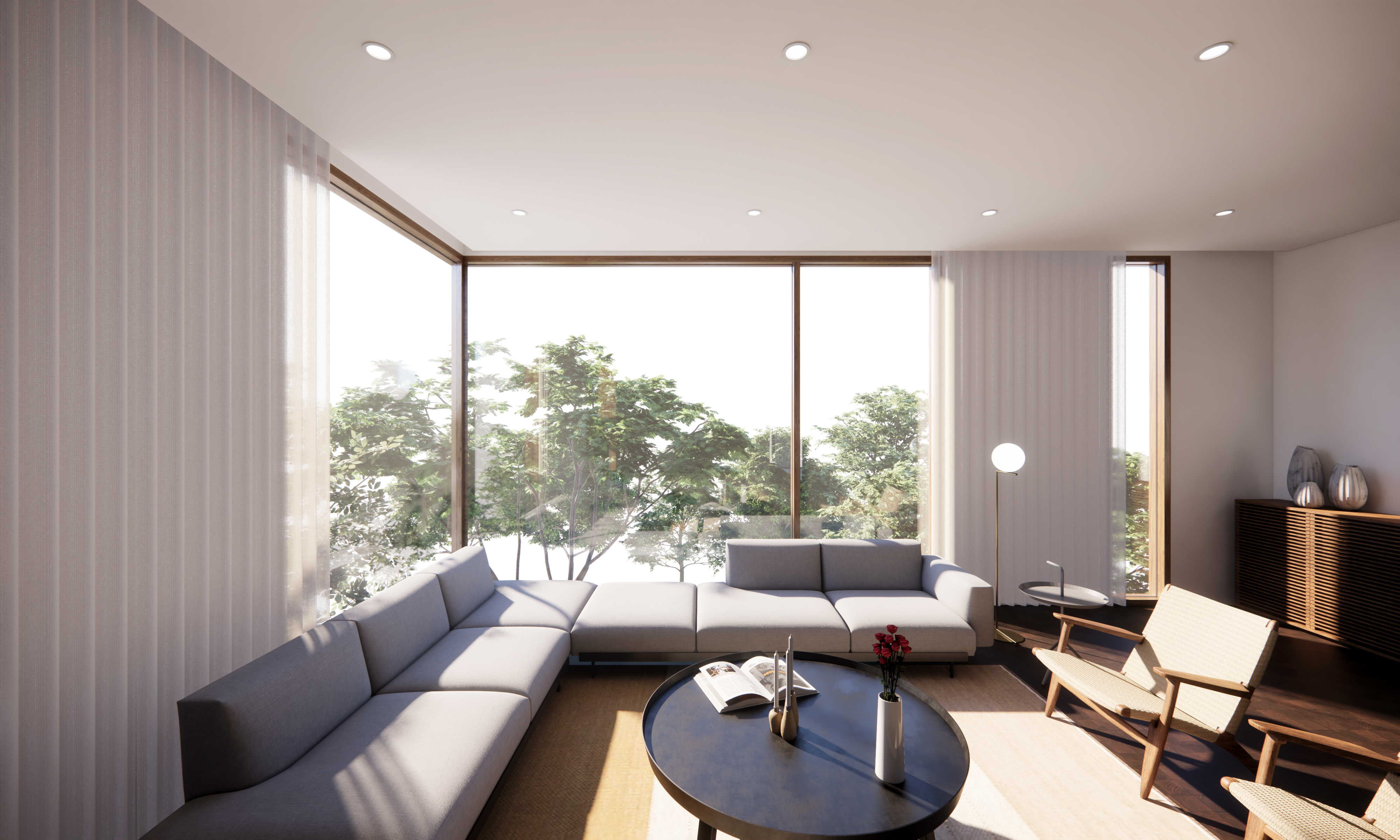 Each room is spatially distinctive. Aligned portals frame views and provide a balance of openness and privacy.